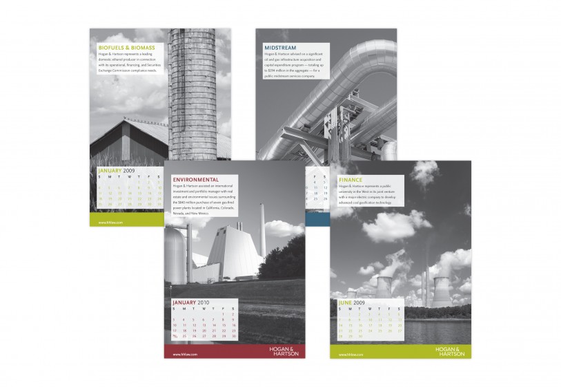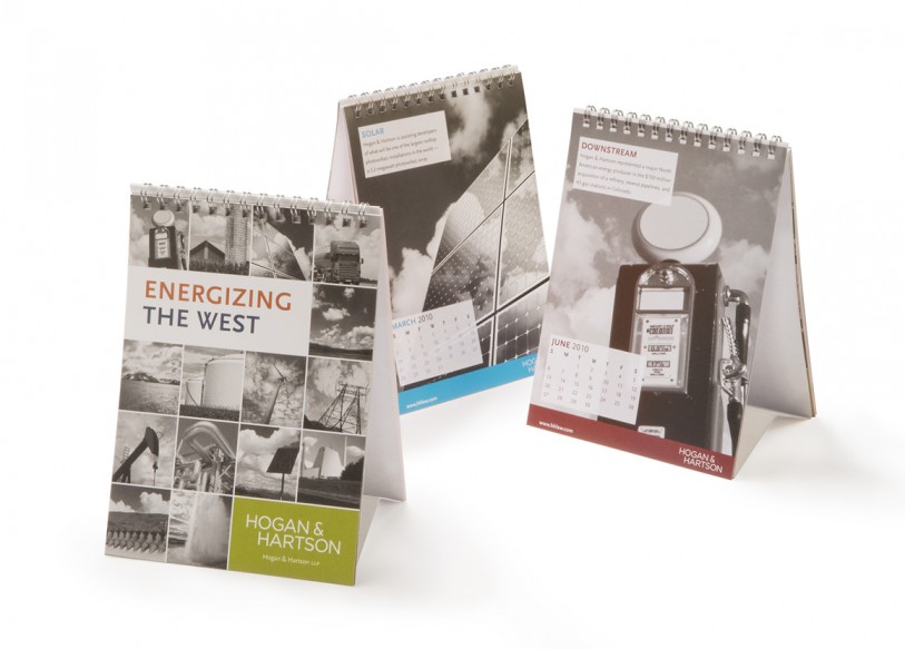 Hogan & Hartson engaged Terrapin Studios to find creative ways to help shed their reputation as a Washington, D.C./regulatory-only firm and promote their robust energy practices in Colorado and Texas. The solution was an 18-month desk calendar that combined case studies with bold, industry-specific black and white photography.