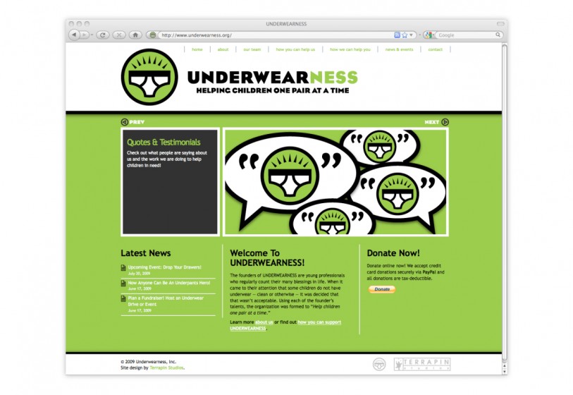 Pro bono logo and website design for a non-profit that provides children in need with new underwear.
